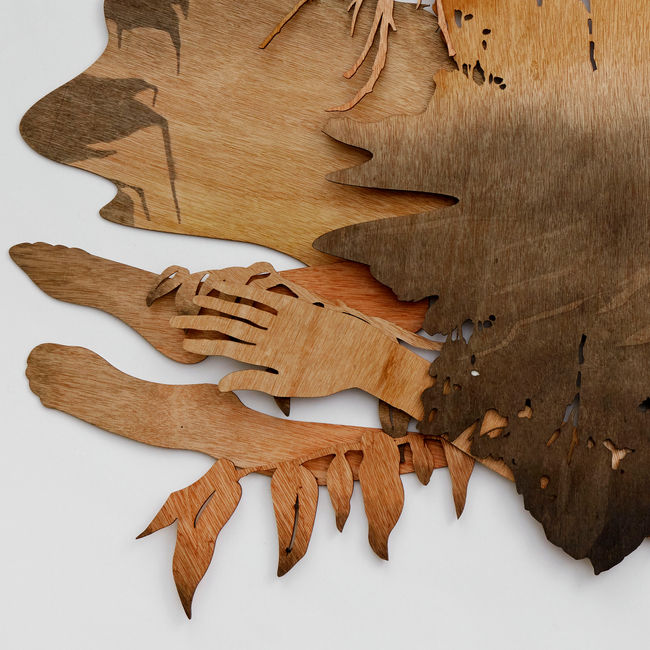 Madela calada y tintes naturales 80 x 120 cm. / Natural inks and wood cut-out. 80 x 120 cm.